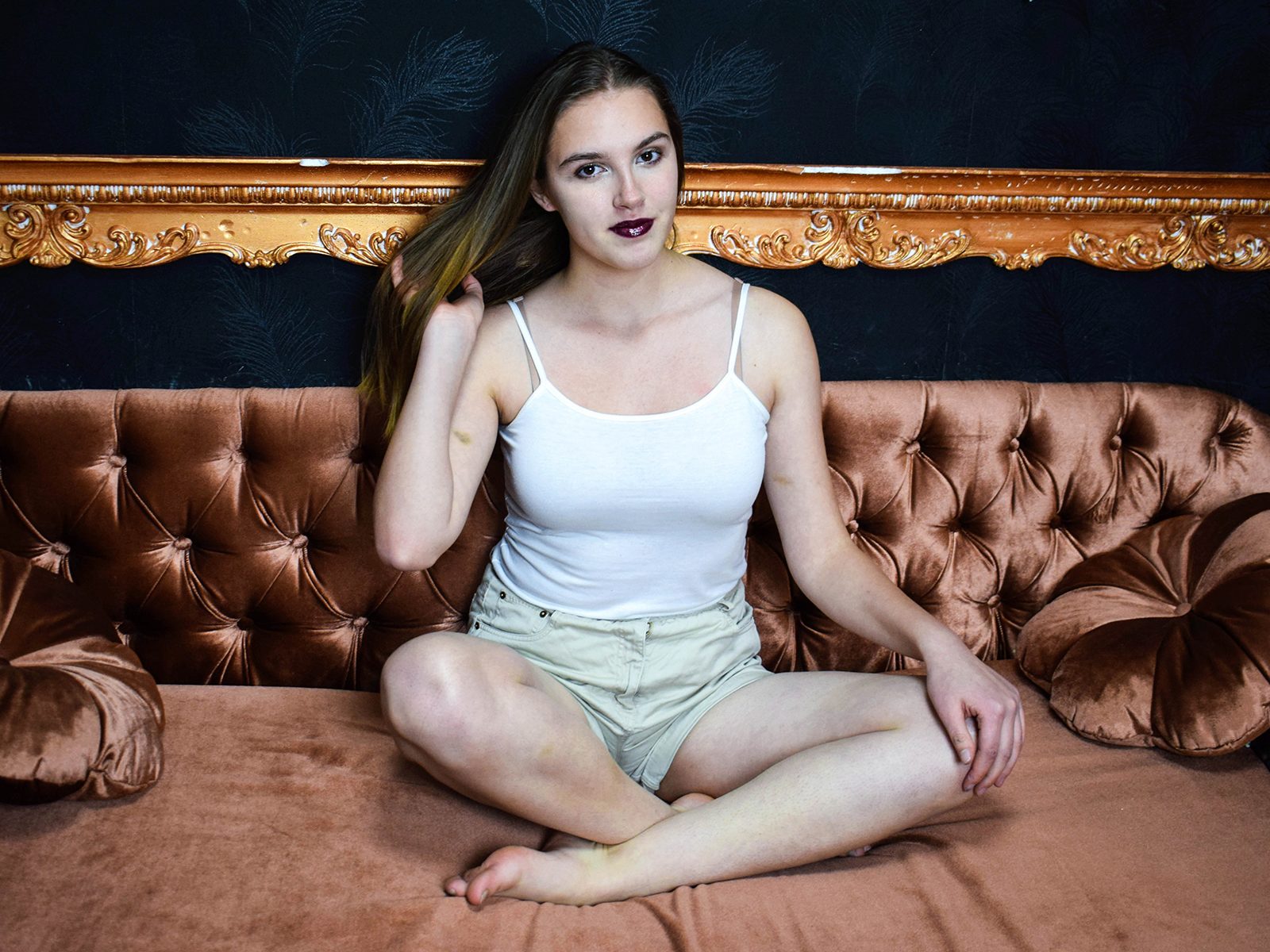 Legs , foot fetish ,spanking, nipple play, striptease